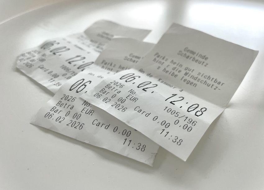 Nachdem wir uns dann gegenseitig noch ein paar Komplimente für unsere tolle Arbeitseinstellung an den Kopf warfen, begann er, die anderen Autos zu checken. Währenddessen ging ich zum nächsten Ticketautomaten und zog einfach mal 20 kostenlose Parktickets für die nächsten 30 Minuten – und klemmte sie den umliegenden Autos an die Scheibenwischer.